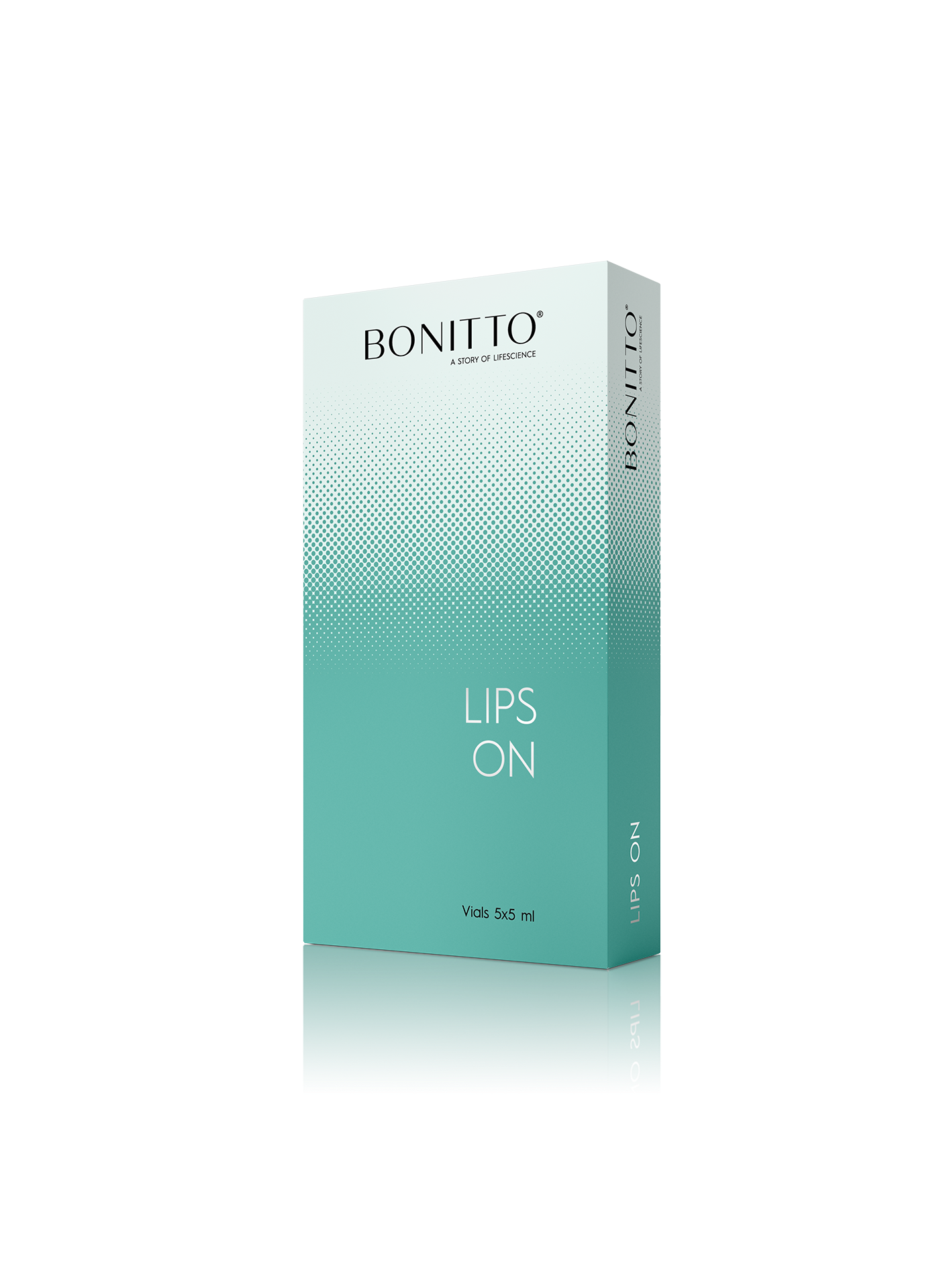LIPS ON is a sterile cosmetic solution designed to rejuvenate and enhance the lips. It smooths the texture, improves moisturization, and boosts softness while enhancing color and volume. This solution provides natural hydration and is intended for topical application to achieve a fuller, more youthful lip appearance.
